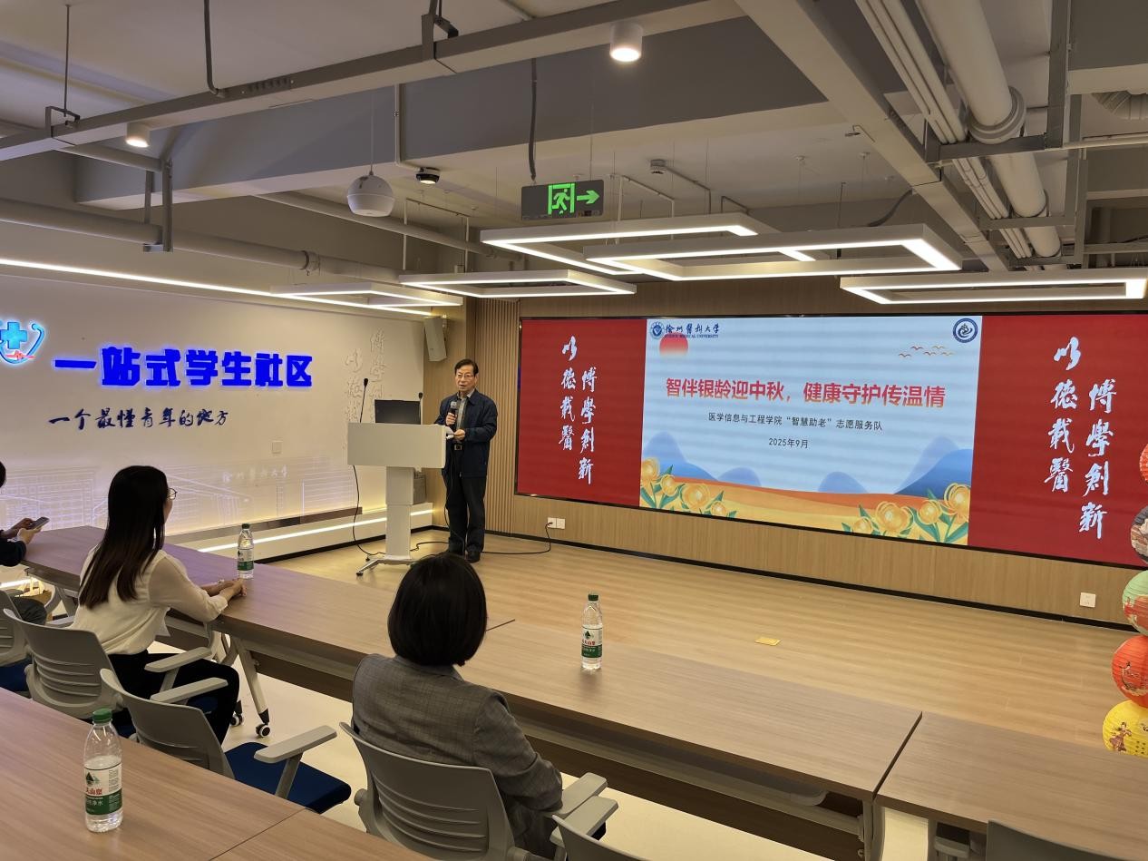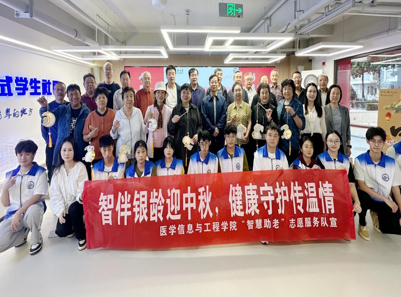 9月25日,医学信息与工程学院“智慧助老”志愿服务队在一站式学生社区和校离退办联合开展“智伴银龄迎中秋,健康守护传温情”志愿服务主题活动。校关工委副主任赵世鸿,校离退办、医学信息与工程学院领导及部分退休教师参加活动。